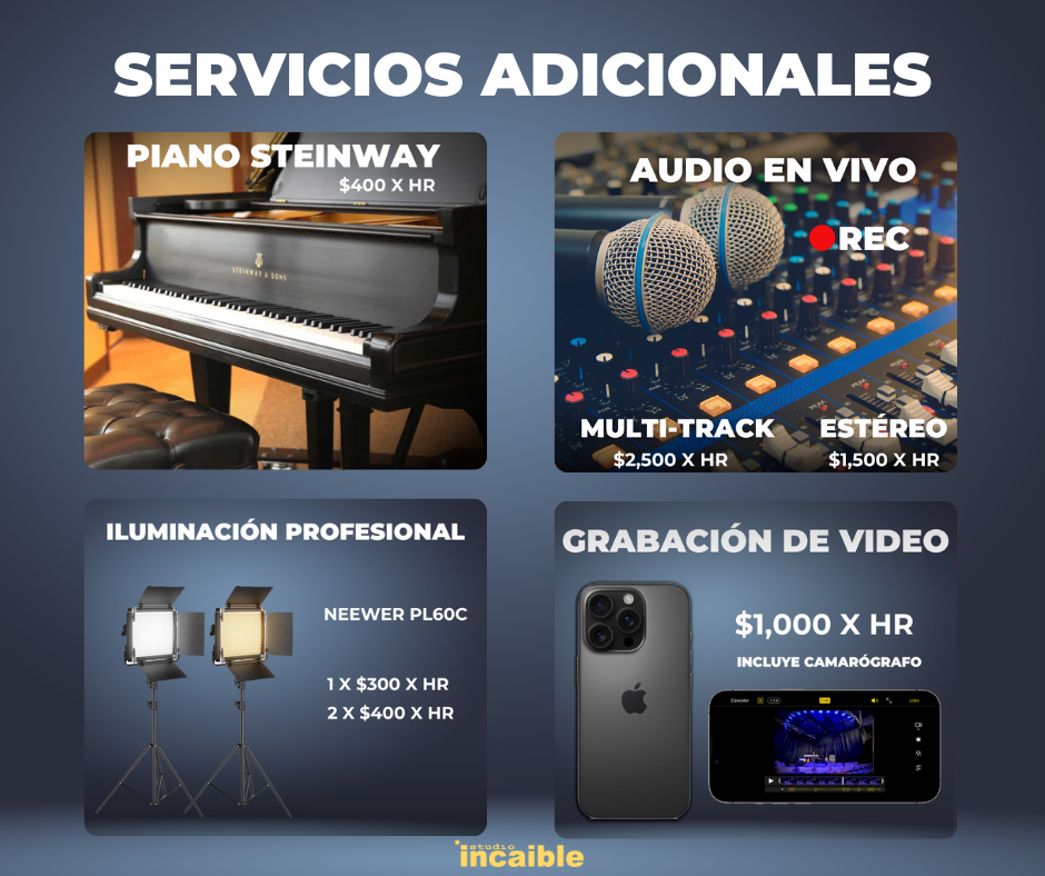 - Incluye renta de estudio de grabación